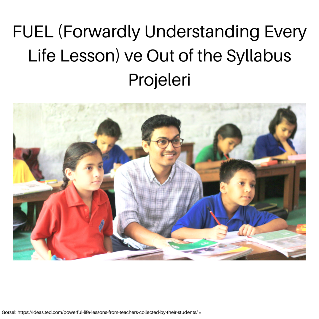 Out of the Syllabus, FUEL’ın 2018 yılında başlatılan ve öğretmenler ile öğrencilerin beraber çalıştığı bir proje. Genel olarak özetlersem, öğretmenlerin sadece ilham geçiren kişi olmadan ilham kaynakları oldukları bir proje. (5)