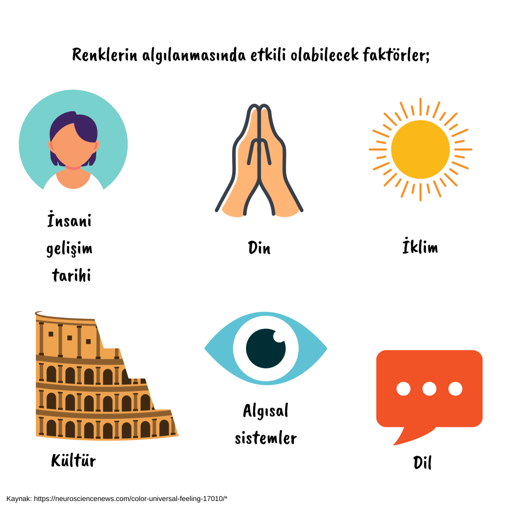 Yapılan güncel araştırmalardan birinde, renklerin de müzik gibi evrensel bir etkiye sahip olabileceği görüldü. Dünyanın farklı yerlerinden insanlar genellikle aynı renkleri aynı duygularla ilişkilendiriyor.
