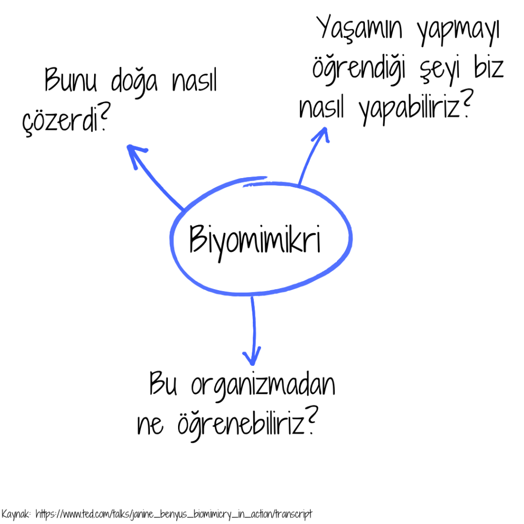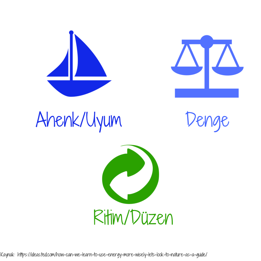 Bir tasarım üzerinde çalışırken doğadaki sistemleri adapte etmek biyomimikridir. Bunu özellikle son teknolojide gözlemleyebiliriz. Burada önemli olan üç anahtar kelime var; ahenk/uyum, denge ve ritim/düzen. Doğa kendi içinde bunları barındırıyor ve bu dengeyi devam ettiren canlılar en uzun ve güzel yaşayanlar oluyor. (5)