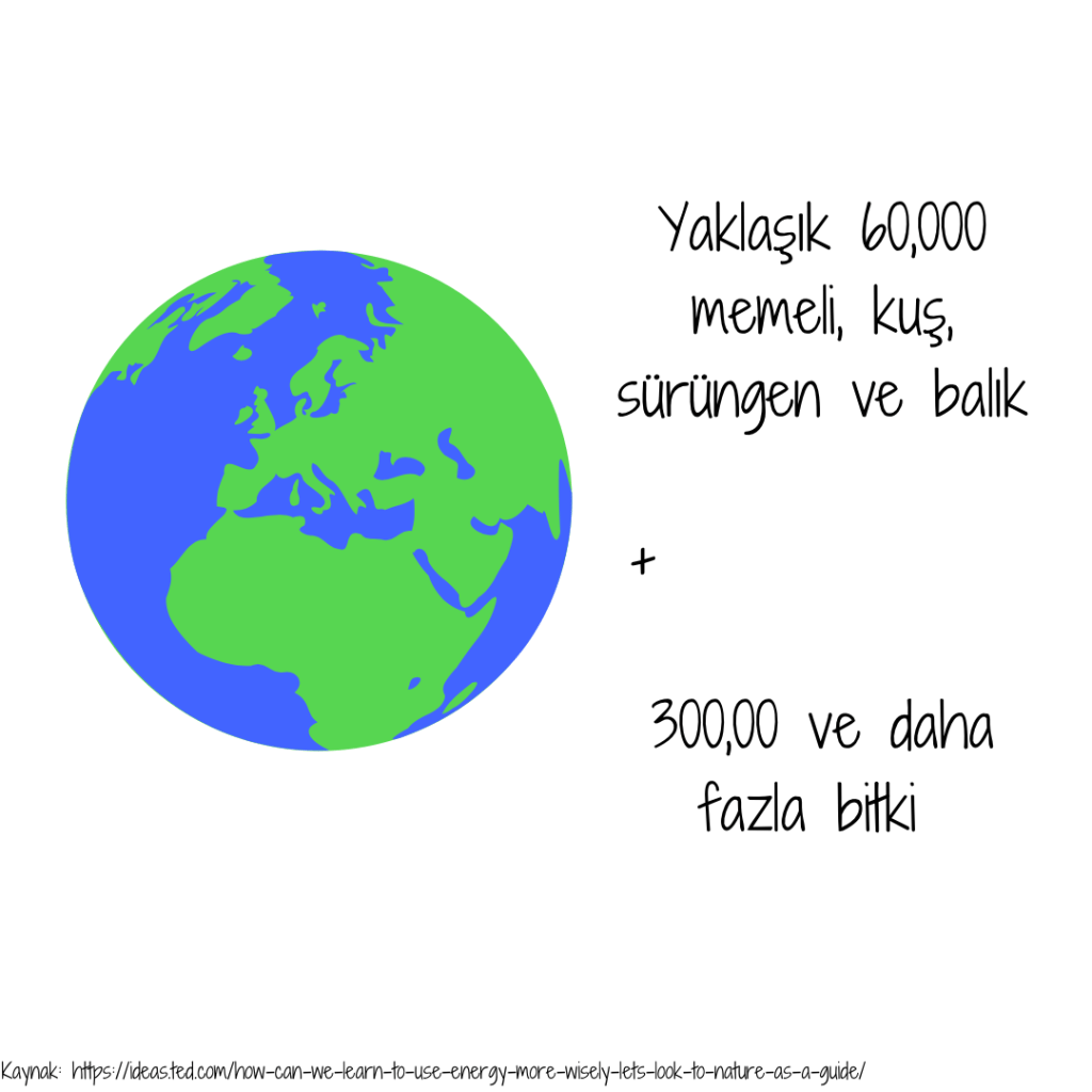 Doğa üstünde yaşadığımız yerküreyi güzelleştiren ve diğer canlı dostalarımızı içeren bir şey. Size bu kadar kapsayıcı ve aynı anda içimizde gücünü hissettiğimiz bir şeyi nasıl anlatabilirim onu da bilmiyorum. Yalnızca şunu yazabilirim; doğanın parçasıyız ve doğa da parçamız. Onu anlamak ve model almak, sürdürebilir bir gelecek için oldukça önemli. Doğada yaklaşık 60,000 memeli, kuş, sürüngen ve balık bulunuyor. Bunlara ek olarak, 300,000’den fazla farklı bitki çeşidi yaşıyor. Bütün canlıların dünyayı zenginleştirecek kabiliyetleri var. Amaç sadece bütün canlılar arası eşitlik değil,yeşillenen bir orman gibi büyümek de olmalı.(2)