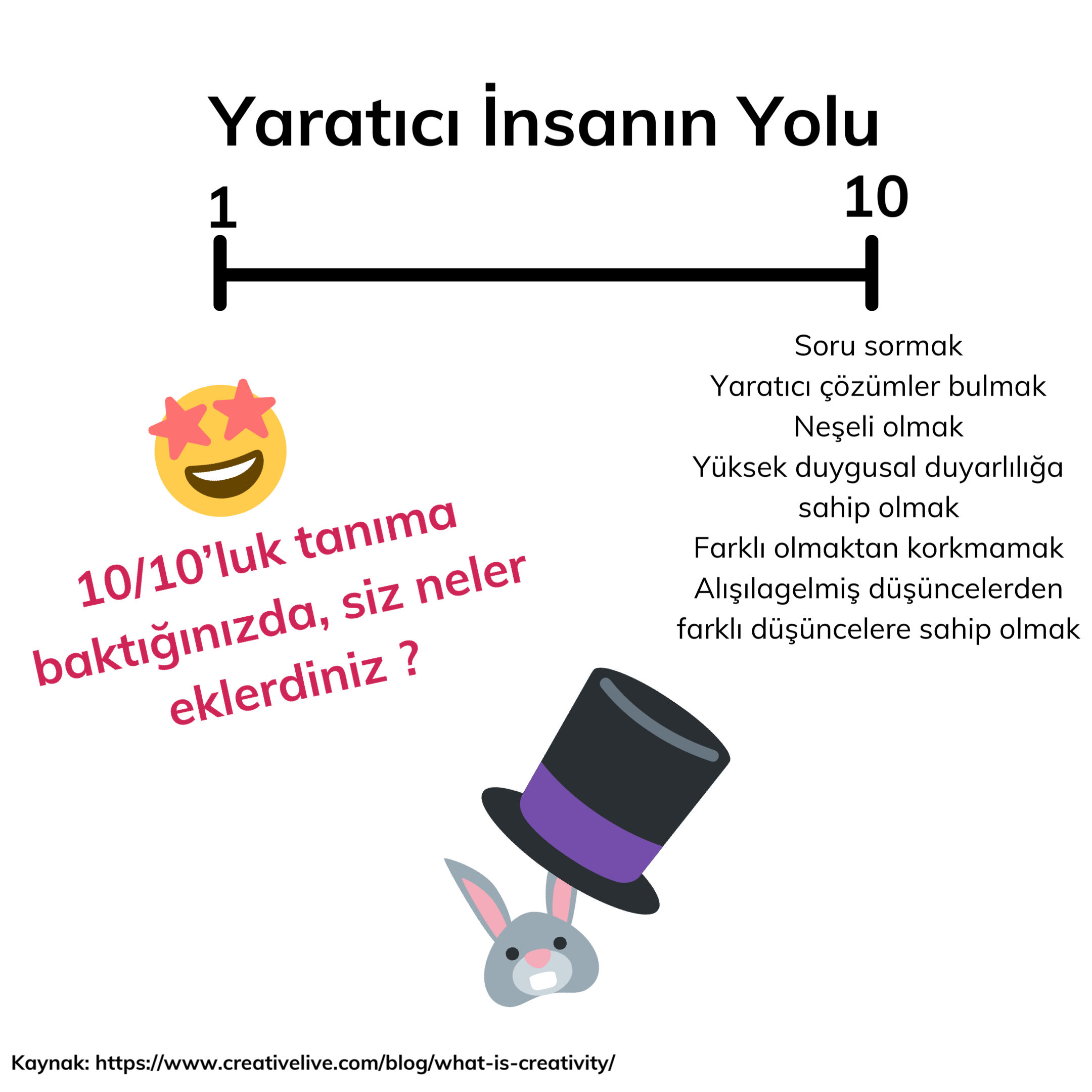 Bundan dolayı eğer kendinizi yaratıcı olmayan bir yetişkin olarak görüyorsanız, kendinize yaratıcı ve yenilikçi olmayı tekrar öğretebilir ve bu konuda alışkanlık geliştirebilirsiniz. (4)